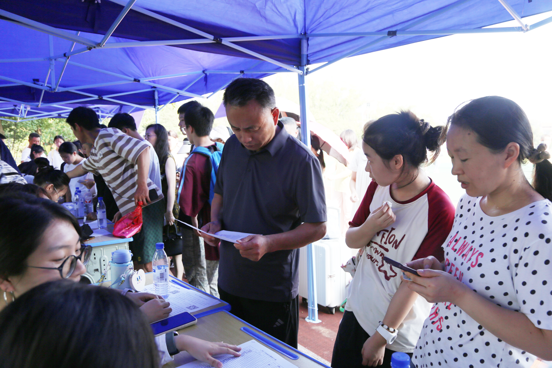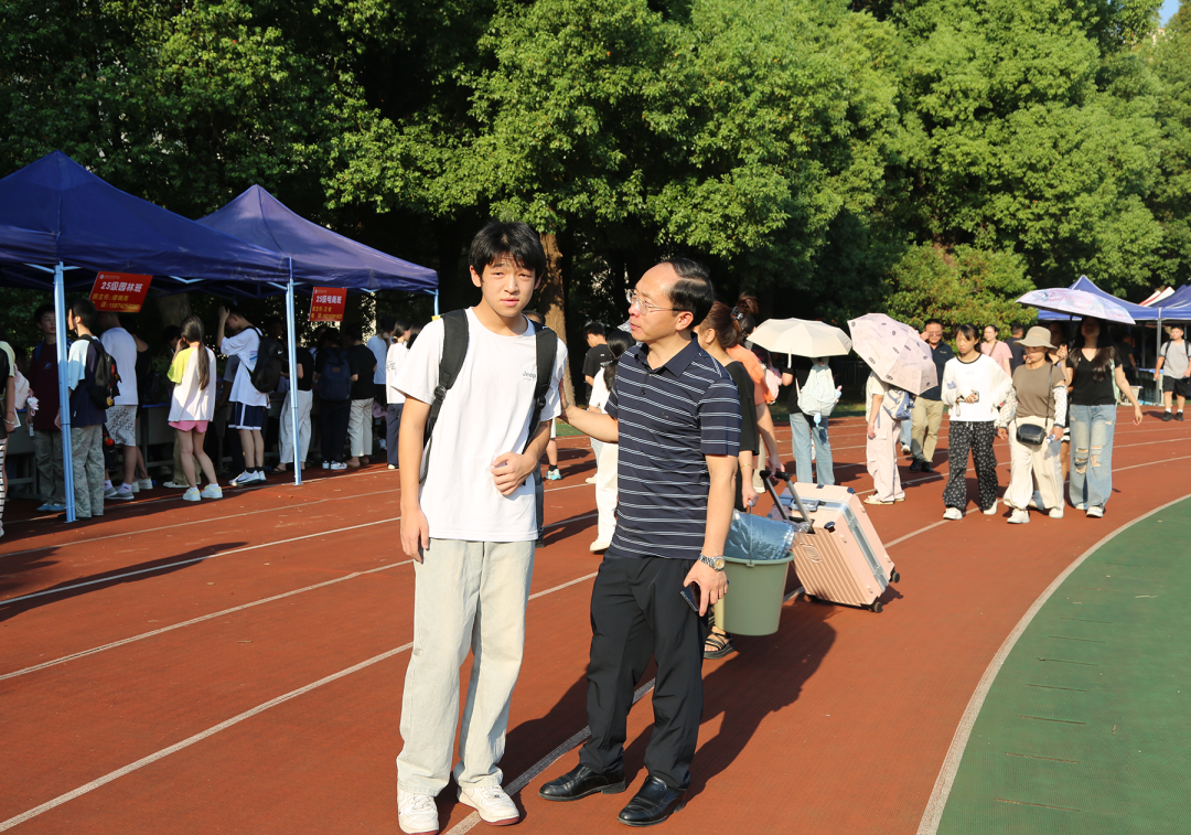 报到期间,学校党委书记黄顺辉、党委副书记、校长黄哲等领导班子来到校门口、报到处、宿舍区等多个点位视察迎新工作,与新生、家长、老师和志愿者亲切交流。“同学是哪个专业的?对校园环境还适应吗?”“老师们辛苦了,一定要做好防暑和服务保障!”领导们详细询问迎新进展,查看防暑措施落实情况,并对全体工作人员的辛勤付出表示感谢。