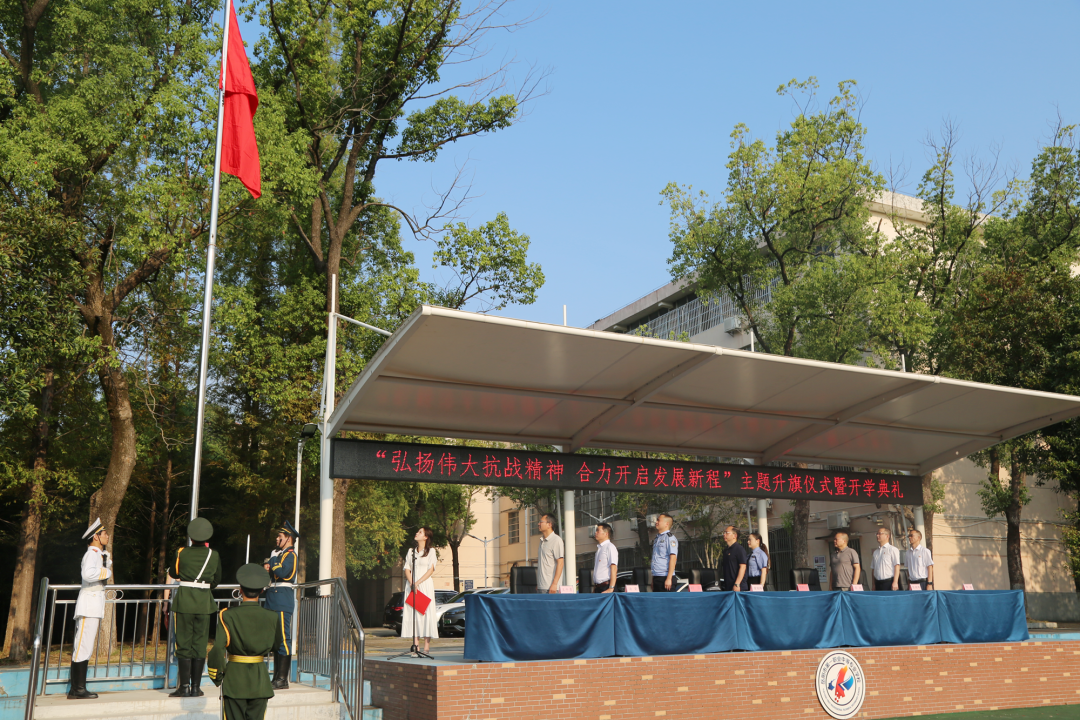 开学典礼在庄严的升旗仪式中拉开帷幕。激昂的《义勇军进行曲》奏响,国旗护卫队迈着铿锵有力的步伐,护送五星红旗走向升旗台。全体师生肃立,行注目礼,鲜艳的五星红旗在蓝天白云的映衬下冉冉升起。这一刻,爱国情怀在每个人心中激荡,激励着大家奋勇向前。