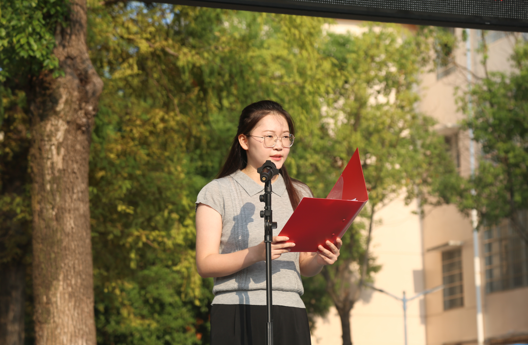 新进教师代表何顺发言,表达了对教育事业的热爱和对加入学校的荣幸之情。她表示作为人民教师,要“追逐光,成为光,汇聚光”,并承诺将以饱满的热情投入教学工作,关爱每一位学生,努力成为学生成长道路上的引路人,与同学们共同进步,为学校发展添砖加瓦。