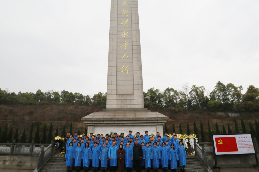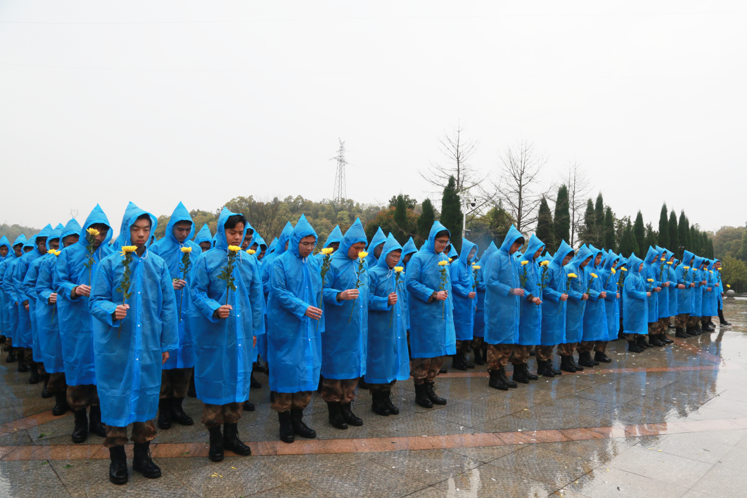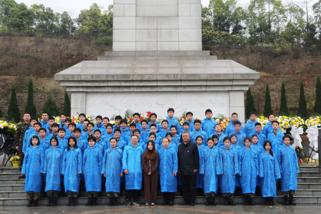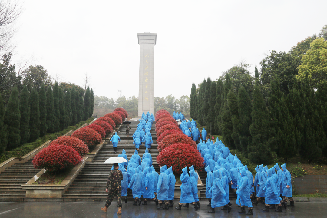 岳阳烈士陵园作为国家级烈士纪念设施,长眠着129位革命英烈,这里不仅是镌刻着平江起义、湘北会战等壮烈史诗的红色沃土,更是孕育了“逐梦海天的强军先锋”张超等人民英雄的精神高地。细雨霏霏中,全体师生列队肃立,怀着无比崇敬的心情,开启本次祭扫活动。